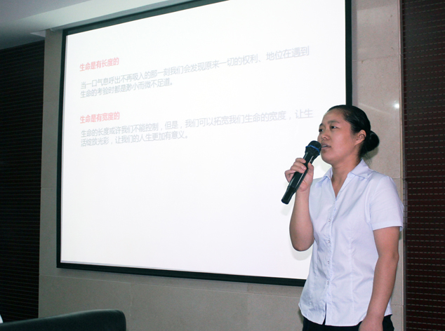 項(xiàng)目管理部黃梅以“生命在于呼吸間”為主題,分享自己對(duì)于人生的感悟