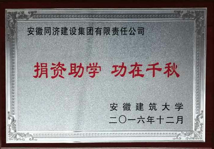 [ 作者:2016 安徽建筑大學(xué)贈(zèng)送“捐資助學(xué) 功在千秋”銅牌 點(diǎn)擊數(shù):1861 更新時(shí)間:2017/04/25]