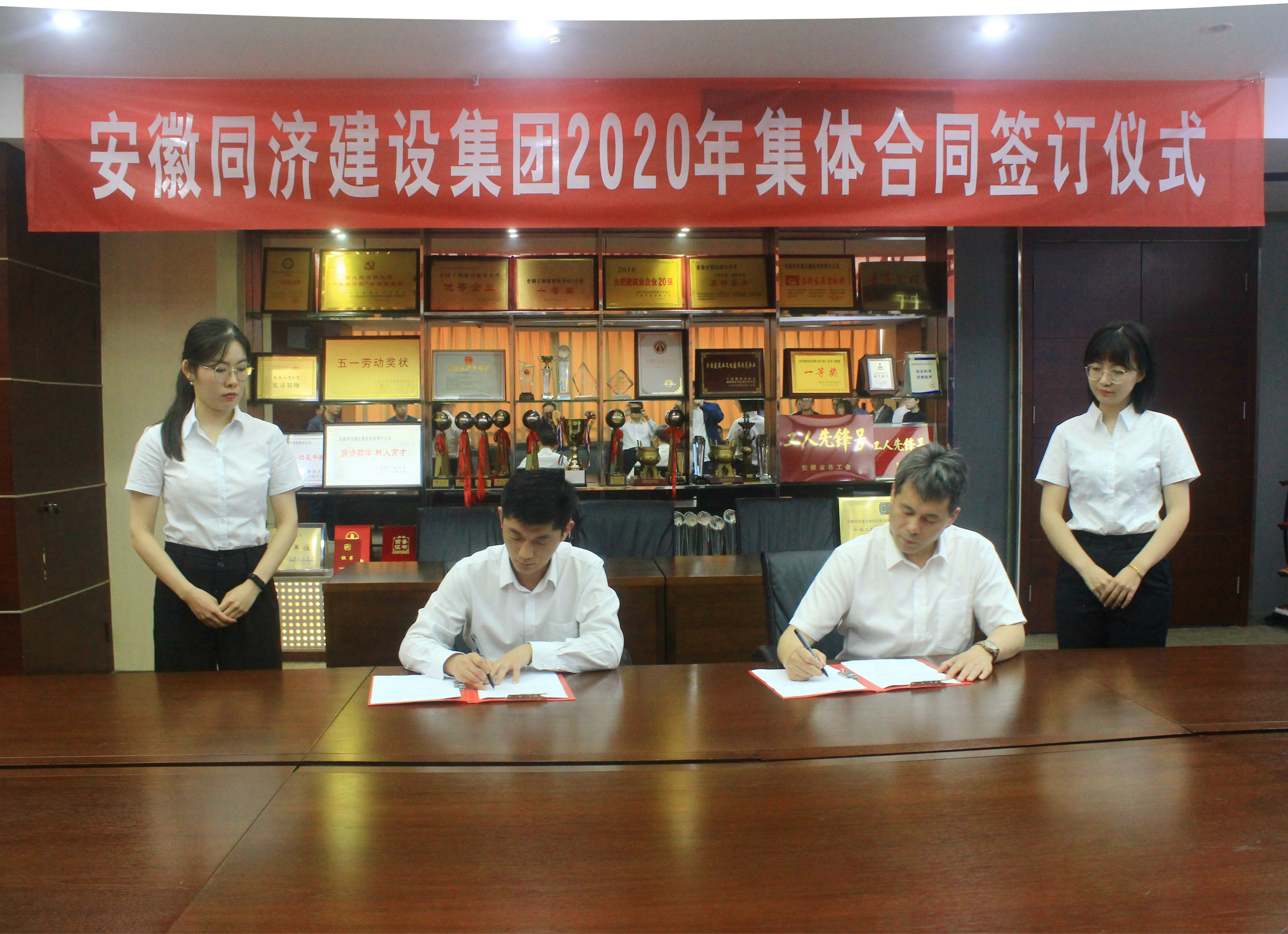 5月7日上午,安徽同濟建設集團2020年集體合同簽訂儀式在公司12樓會議室舉行。同濟集團黨委書記、董事長吳曉東等公司領導出席儀式,吳曉東代表企業方與工會主席劉長豐簽訂了2020年集體合同。