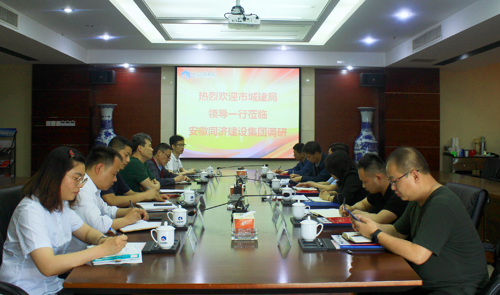 5月7日,合肥市城鄉建設局副調研員、市大建辦副主任、助推建筑業企業發展第八包保組組長戴曉盈在市管網辦、瑤海區住建局等單位負責同志陪同下深入同濟集團調研指導,同濟集團黨委書記、董事長吳曉東等熱情接待。