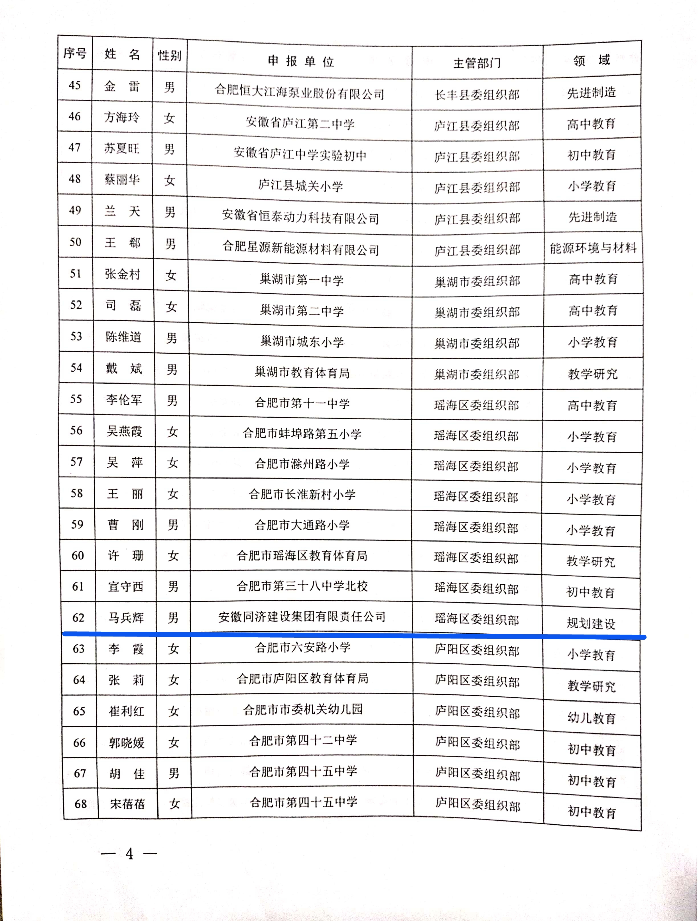 同濟集團總工程師馬兵輝榮獲“合肥市專業技術拔尖人才”稱號[ 作者:王健 點擊數:2821 更新時間:2020/05/20]