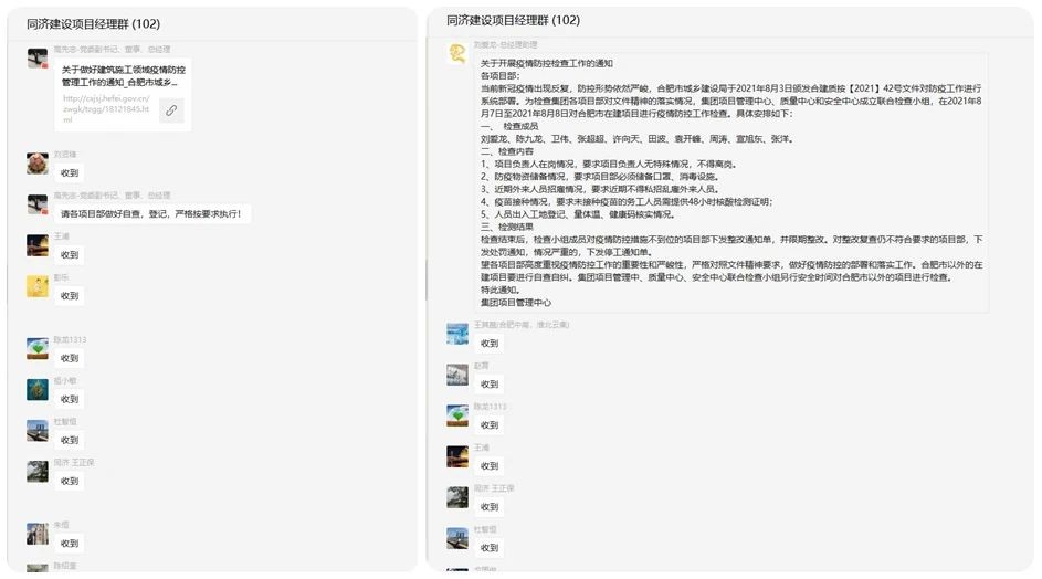 建筑工地疫情防控,同濟(jì)集團(tuán)在行動(dòng)![ 作者:瞿浩 點(diǎn)擊數(shù):78 更新時(shí)間:2021/08/11] 近日,全國多個(gè)地區(qū) 先后出現(xiàn)新冠肺炎確診病例 疫情牽動(dòng)著大家的心 防控也成了當(dāng)前的頭等大事 8月3日,合肥市城鄉(xiāng)建設(shè)局發(fā)布《關(guān)于做好建筑施工領(lǐng)域疫情防控管理工作的通知》,對(duì)全市在建工地持續(xù)做好防疫工作進(jìn)行系統(tǒng)部署。面對(duì)復(fù)雜嚴(yán)峻的防疫形勢,同濟(jì)集團(tuán)積極應(yīng)對(duì),嚴(yán)格執(zhí)行省應(yīng)急管理廳、省住建廳、市城建局下發(fā)的有關(guān)防疫工作的部署,壓實(shí)安全責(zé)任,落實(shí)防疫措施,確保疫情防控和生產(chǎn)經(jīng)營“兩不誤”。 加強(qiáng)組織領(lǐng)導(dǎo) “疫情就是命令,防控就是責(zé)任。”為保證各項(xiàng)防疫工作有序、穩(wěn)步落實(shí),同濟(jì)集團(tuán)即日發(fā)布《關(guān)于開展疫情防控檢查工作的通知》,成立聯(lián)合檢查小組,并對(duì)在建項(xiàng)目開展疫情防控工作專項(xiàng)巡查,對(duì)各在建項(xiàng)目防疫工作的落實(shí)情況進(jìn)行重點(diǎn)檢查。 要求在建項(xiàng)目相關(guān)負(fù)責(zé)人須開展疫情防控和安全生產(chǎn)風(fēng)險(xiǎn)研判,實(shí)施項(xiàng)目負(fù)責(zé)人領(lǐng)導(dǎo)帶班制度,狠抓各項(xiàng)防疫和安全生產(chǎn)措施的有效落實(shí)。一旦發(fā)現(xiàn)建筑工地疫情事件,項(xiàng)目部應(yīng)立即逐級(jí)上報(bào),并按有關(guān)規(guī)定果斷處置。
