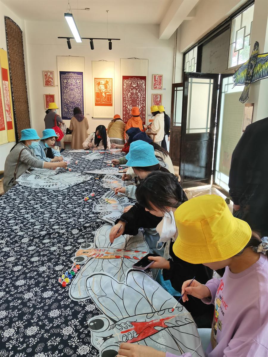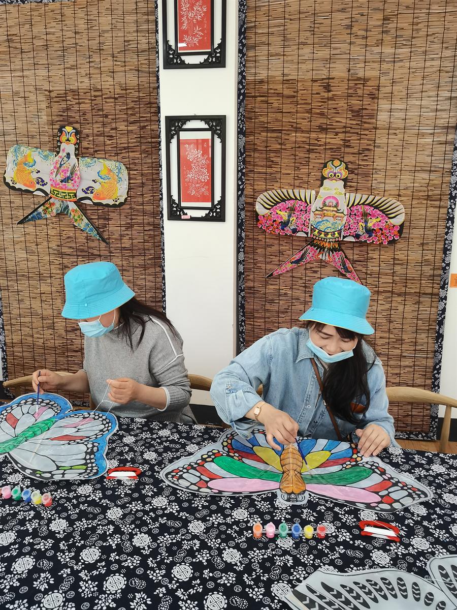 通過各色顏料裝飾繪畫自己的風箏,五彩繽紛的色彩勾勒出屬于自己的美好祝愿。