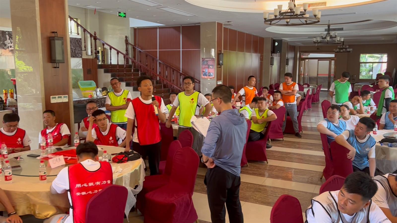 圖 | 同濟集團副總經理王鑫磊作活動開場講話 此次主題培訓分為破冰分組、挑戰150秒、急速時限、安全實操教學、安全知識競答五個環節組成。