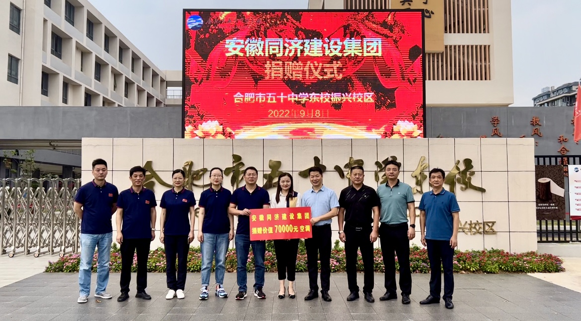 同濟(jì)集團(tuán)赴合肥市五十中學(xué)東校振興校區(qū)開展愛心捐贈(zèng)[ 作者:陳鎣喬 點(diǎn)擊數(shù):4116 更新時(shí)間:2022/09/09] 9月8日上午,同濟(jì)集團(tuán)黨委副書記、董事、總經(jīng)理高先志一行赴合肥市五十中學(xué)東校振興校區(qū)開展愛心捐贈(zèng)活動(dòng),為該校捐贈(zèng)了價(jià)值70000元空調(diào),進(jìn)一步改善學(xué)校辦學(xué)條件。孟斌校長(zhǎng)代表校方熱情接待高先志一行。蜀山經(jīng)開區(qū)黨工委委員賀麗麗出席活動(dòng)并講話。
