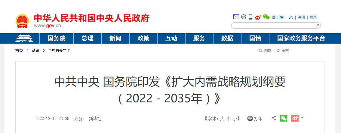 重磅!中共中央 國務(wù)院印發(fā)《擴大內(nèi)需戰(zhàn)略規(guī)劃綱要(2022-2035年)》!建設(shè)領(lǐng)域相關(guān)內(nèi)容有這些!發(fā)布者:陳鎣喬 點擊數(shù):2390 更新時間:2022/12/16 近日,中共中央、國務(wù)院印發(fā)《擴大內(nèi)需戰(zhàn)略規(guī)劃綱要(2022-2035年)》。