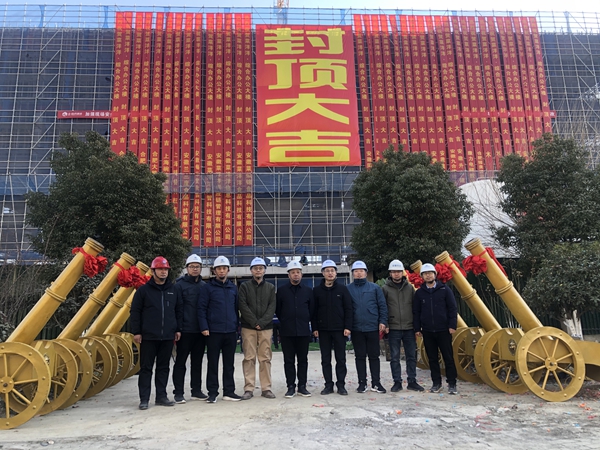 2025年1月15日上午,同濟集團承建的安徽菜似錦食品科技有限公司總部基地暨預制菜產業園建設項目綜合辦公大樓主體結構順利封頂,項目建設、監理、設計、勘察、施工等相關單位負責人出席封頂儀式,各參建單位代表參加了封頂儀式。