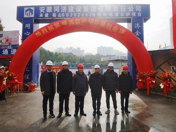 1月20日上午,同濟集團承建的綠城詠溪雲廬項目主體結構全部順利封頂,標志著項目建設取得了階段性成果。項目建設、監理、施工及參建單位代表參加了封頂儀式。