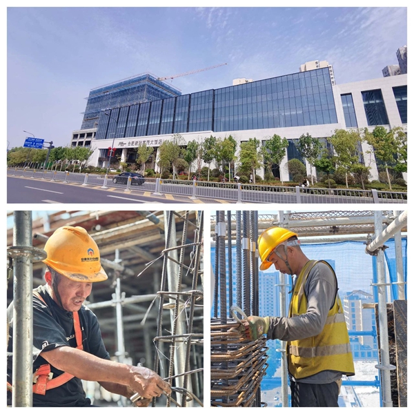 合肥矽力杰模擬芯片項目施工現(xiàn)場,隨處可見同濟建設(shè)者們忙碌的身影,他們放棄假日休息,加班加點開足馬力加快推進工程建設(shè)。