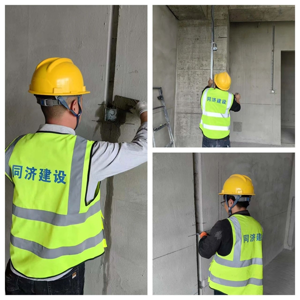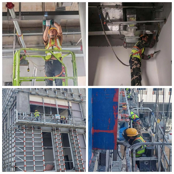 南通海門希爾頓歡朋酒店裝飾項目的工人們正在緊張有序地進行吊頂安裝、線槽開鑿、膩子打底等裝修工序,全力保證項目順利推進。