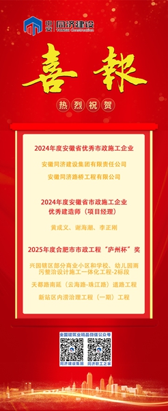 近日,同濟(jì)集團(tuán)喜報(bào)頻傳!同濟(jì)集團(tuán)和同濟(jì)路橋公司被安徽省市政工程協(xié)會(huì)授予“2024年度安徽省優(yōu)秀市政施工企業(yè)”,3位項(xiàng)目經(jīng)理獲得2024年度安徽省市政施工企業(yè)優(yōu)秀建造師(項(xiàng)目經(jīng)理)。 從合肥市市政工程協(xié)會(huì)獲悉,同濟(jì)集團(tuán)承建、同濟(jì)路橋公司參建的興園轄區(qū)部分商業(yè)小區(qū)和學(xué)校、幼兒園雨污整治設(shè)計(jì)施工一體化工程-2標(biāo)段、天都路南延(云海路-珠江路)道路工程、新站區(qū)內(nèi)澇治理工程(一期)工程,共3項(xiàng)工程獲得2025年度合肥市市政工程“廬州杯”獎(jiǎng)。 |