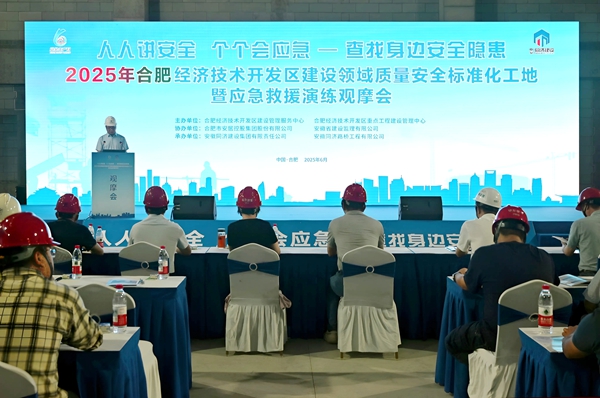 2025年合肥經(jīng)開(kāi)區(qū)建設(shè)領(lǐng)域質(zhì)量安全標(biāo)準(zhǔn)化工地暨應(yīng)急救援演練觀摩會(huì)在同濟(jì)集團(tuán)承建項(xiàng)目舉行發(fā)布者:戴云東 點(diǎn)擊數(shù):553 更新時(shí)間:2025/06/23