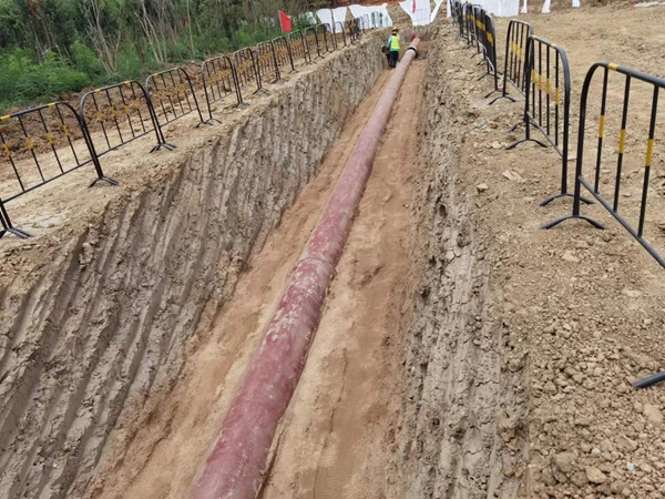 2022年8月27日,合肥大科學(xué)裝置集中區(qū)魏武路(合淮路-譚崗路)道路工程-2標(biāo)段緯一路工程現(xiàn)場排水管道施工。