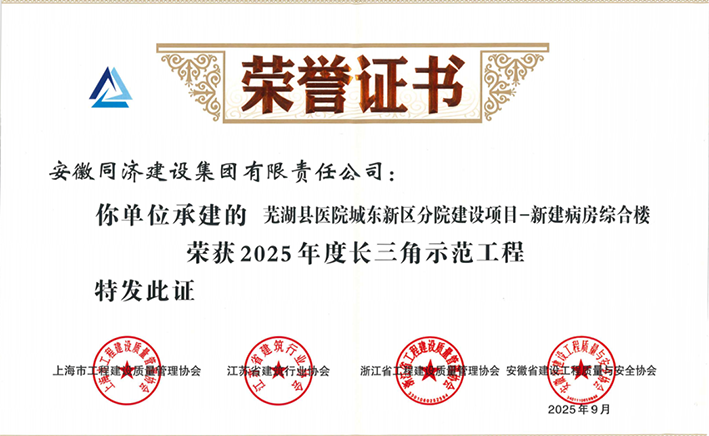 同濟(jì)集團(tuán)承建工程獲2025年度“長(zhǎng)三角示范工程”獎(jiǎng)發(fā)布者:劉長(zhǎng)豐 點(diǎn)擊數(shù):183 更新時(shí)間:2025/09/12