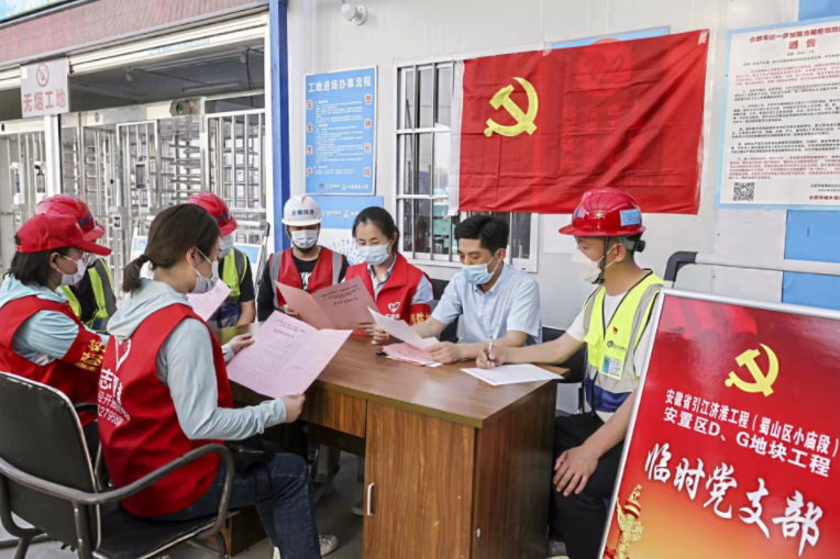 今年四月底,在蜀山區(qū)疫情防控最吃緊之時(shí),為全力保障做好建筑領(lǐng)域疫情防控工作,充分發(fā)揮黨支部的戰(zhàn)斗堡壘作用和黨員先鋒模范作用,蜀山經(jīng)開(kāi)區(qū)黨政辦會(huì)同同濟(jì)集團(tuán)黨委成立了引江濟(jì)淮工程(蜀山區(qū)小廟段)安置區(qū)D、G地塊工程臨時(shí)黨支部,全力做好項(xiàng)目疫情防控及保障施工生產(chǎn)。