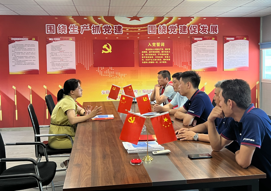 在項(xiàng)目黨員活動(dòng)室召開(kāi)了項(xiàng)目黨建工作座談會(huì),蜀山區(qū)重點(diǎn)工程建設(shè)管理中心鄒巧珍代表項(xiàng)目建設(shè)單位對(duì)臨時(shí)黨支部的成立表示熱烈祝賀并提出希望和要求;同濟(jì)集團(tuán)劉長(zhǎng)豐介紹了同濟(jì)集團(tuán)黨建工作概況及“支部建在工地上”基層黨建工作制度;臨時(shí)黨支部王超介紹了支部籌建情況及三季度工作計(jì)劃。