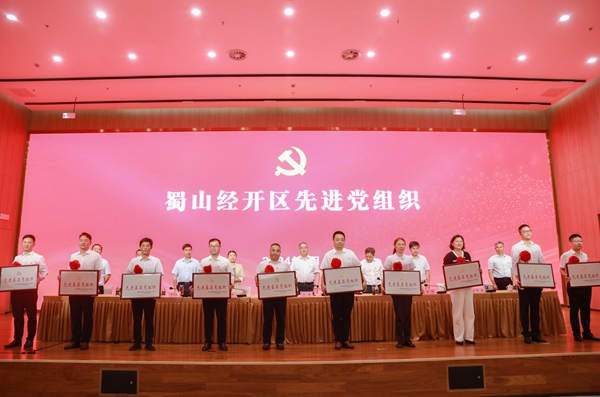 7月1日上午,合肥蜀山經(jīng)濟(jì)技術(shù)開發(fā)區(qū)召開慶祝中國共產(chǎn)黨成立103周年暨“兩優(yōu)一先”表彰會。會議宣讀了表彰決定,現(xiàn)場為“兩優(yōu)一先”表彰對象代表頒獎,為老黨員代表頒發(fā)“光榮在黨50年”紀(jì)念章。